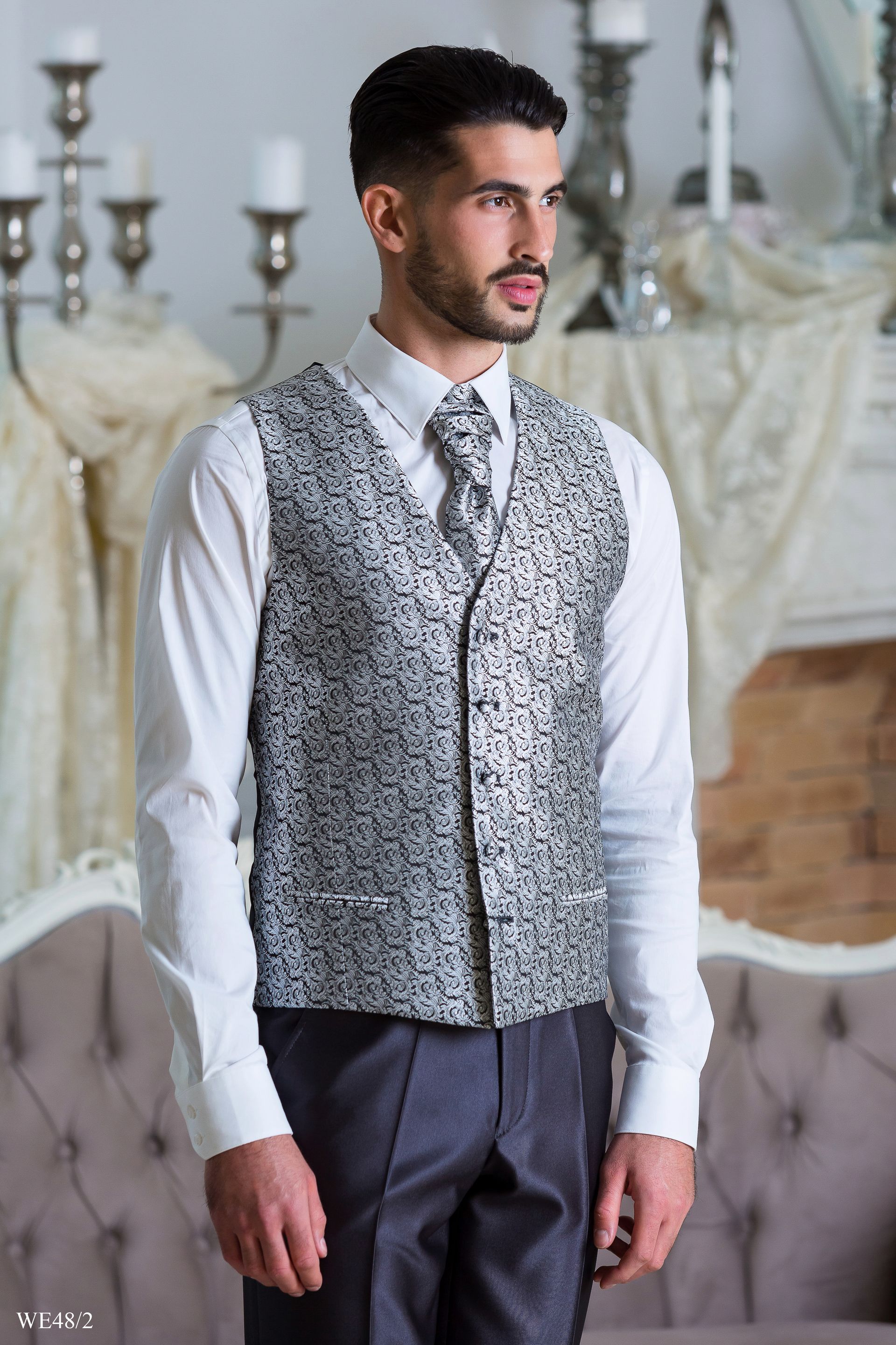 Ezüst-fekete mintás díszmellény szett