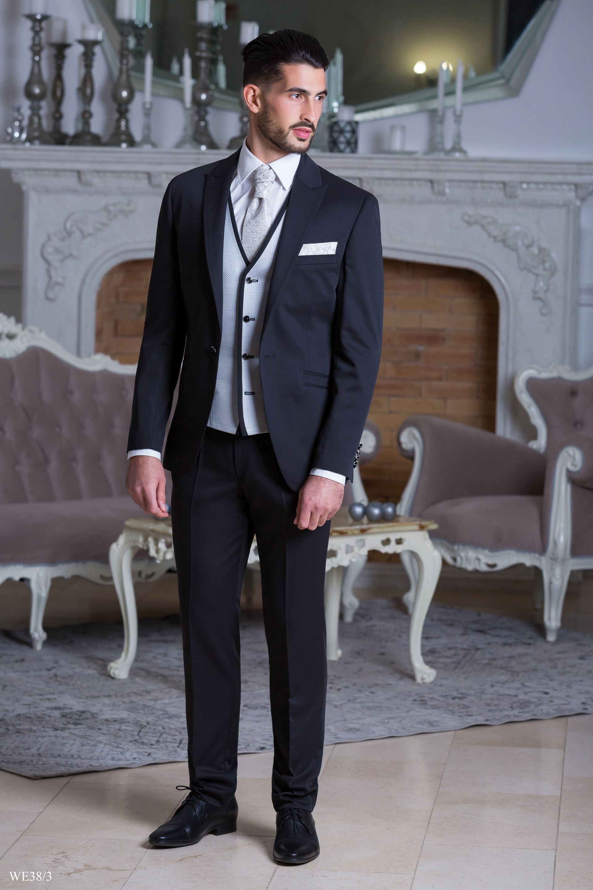 Fekete elegáns öltöny fehér mellénnyel férfi szmoking vásárlás