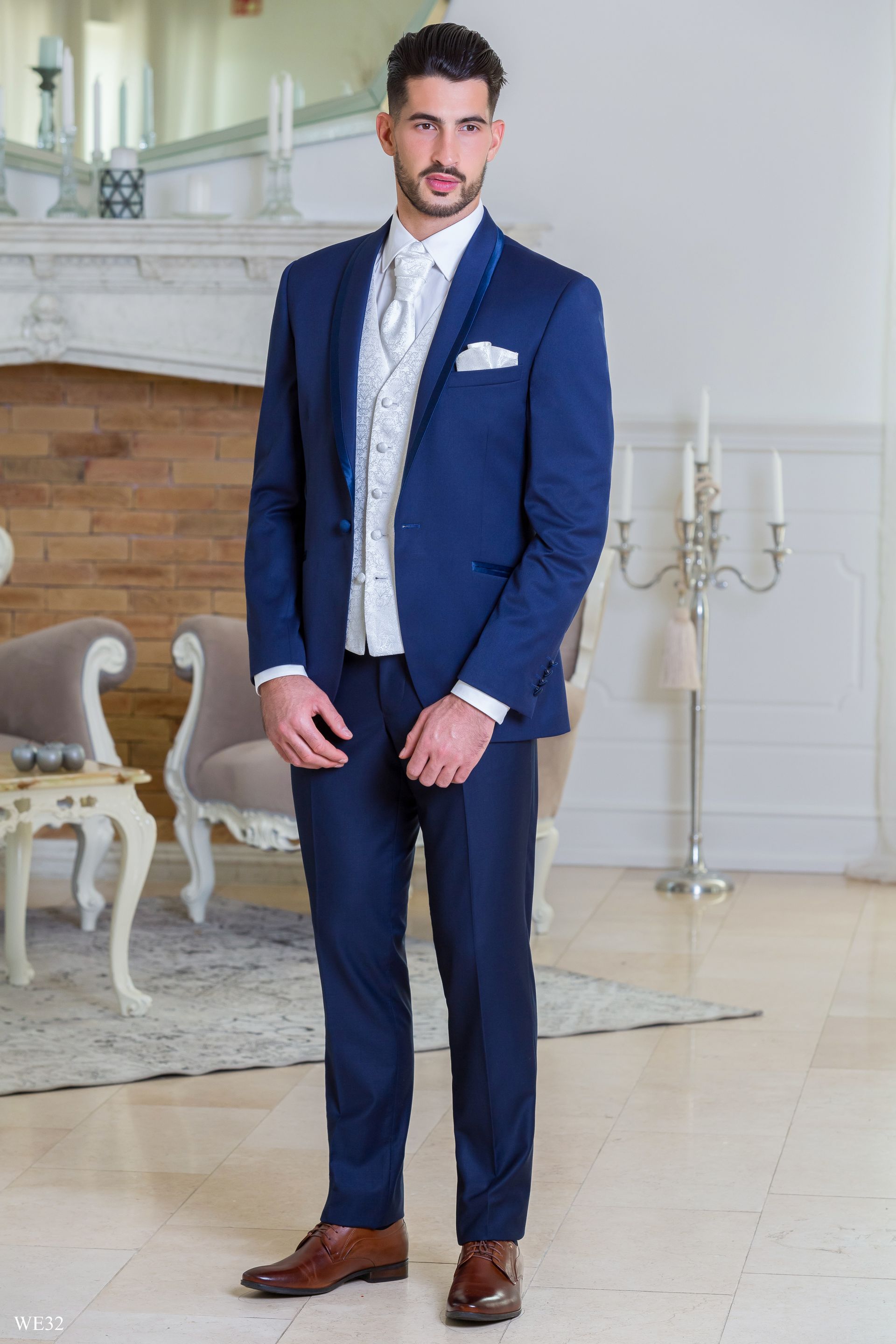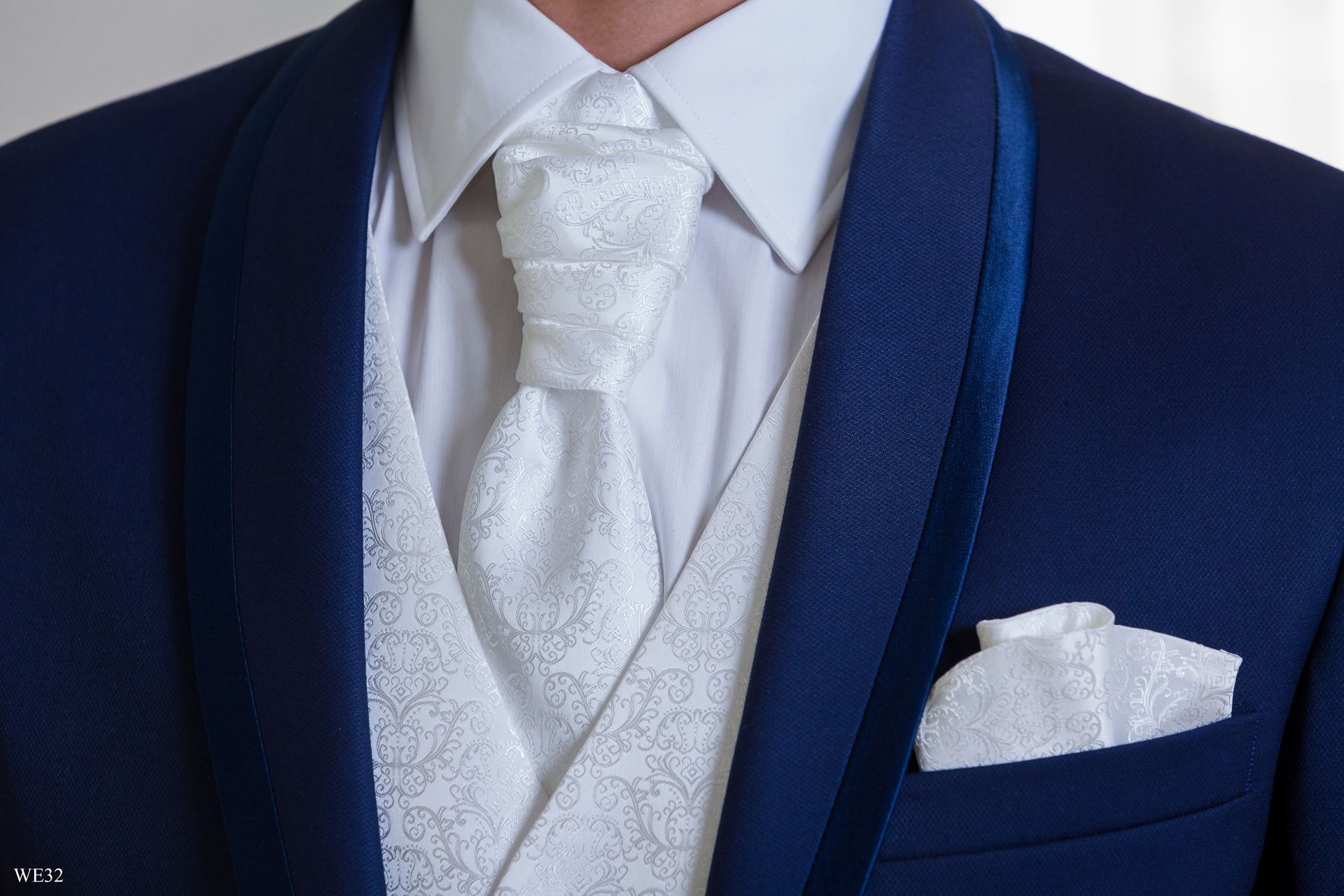 Kék esküvői szmoking fehér szatén mellénnyel 2