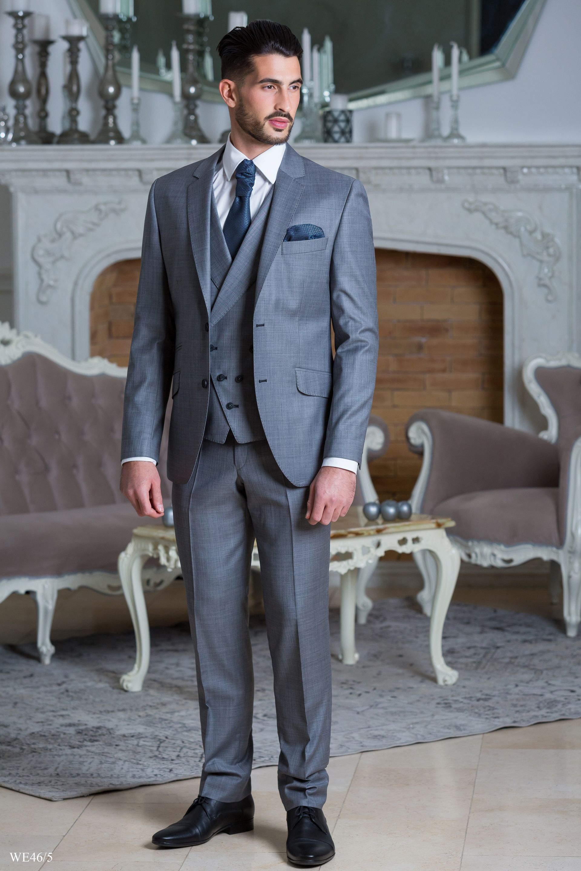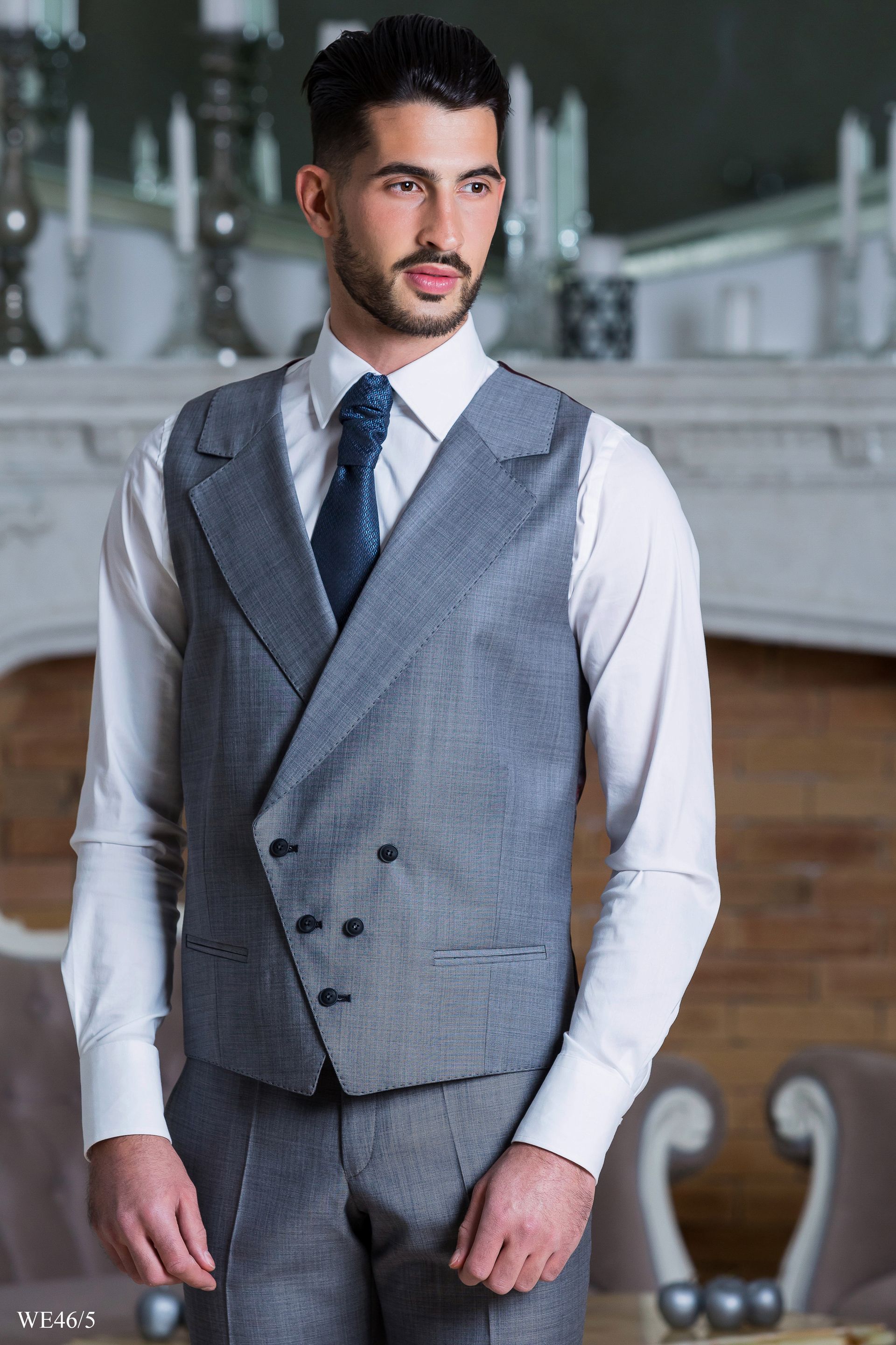 Szürke öltöny duplasoros szövet mellénnyel
